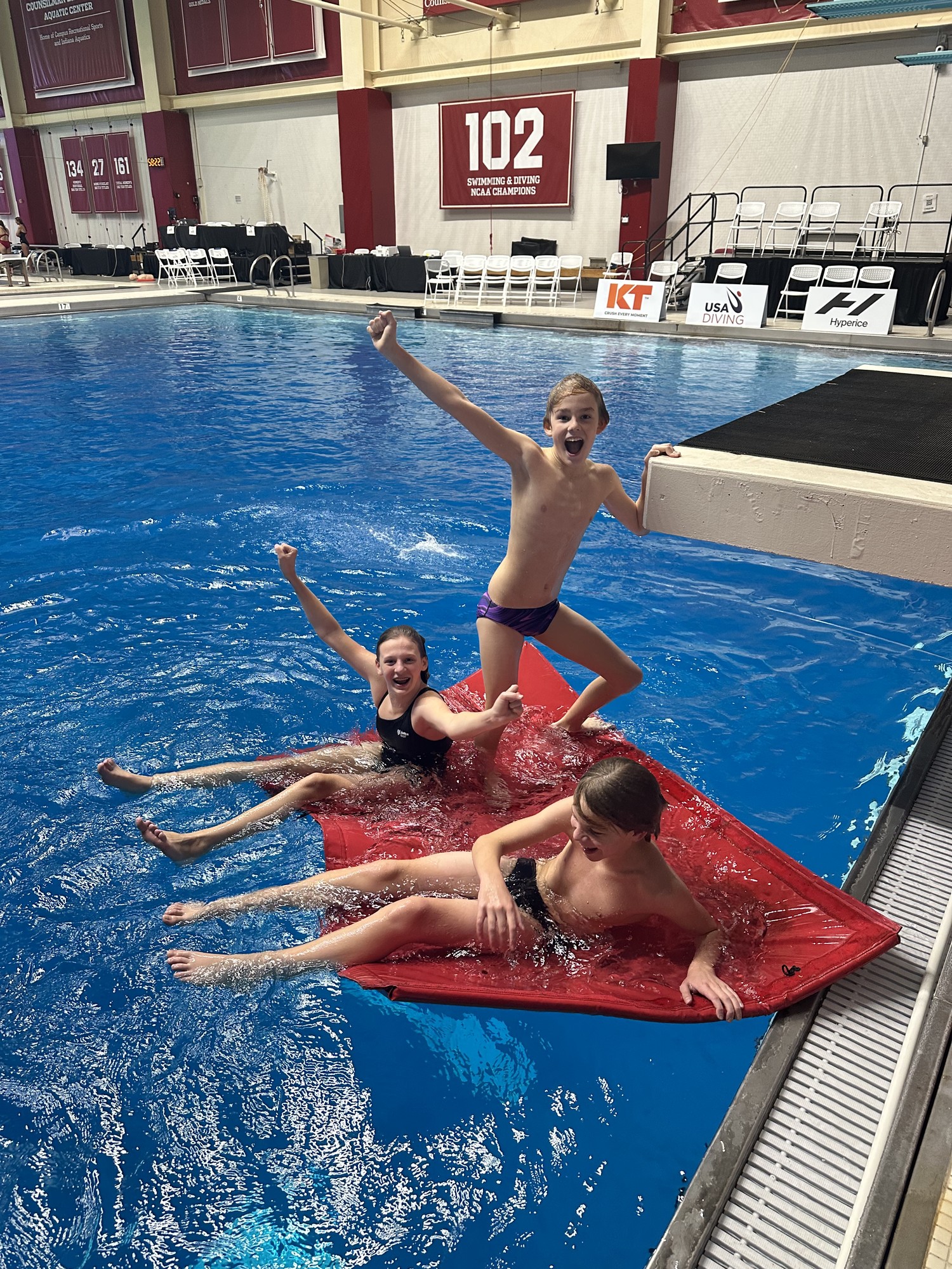 No experience needed! As long as they can swim well to the wall after jumping/diving into the pool, they can join us. Experience with gymnastics or some type of acrobatics usually makes for an easy transition into diving!